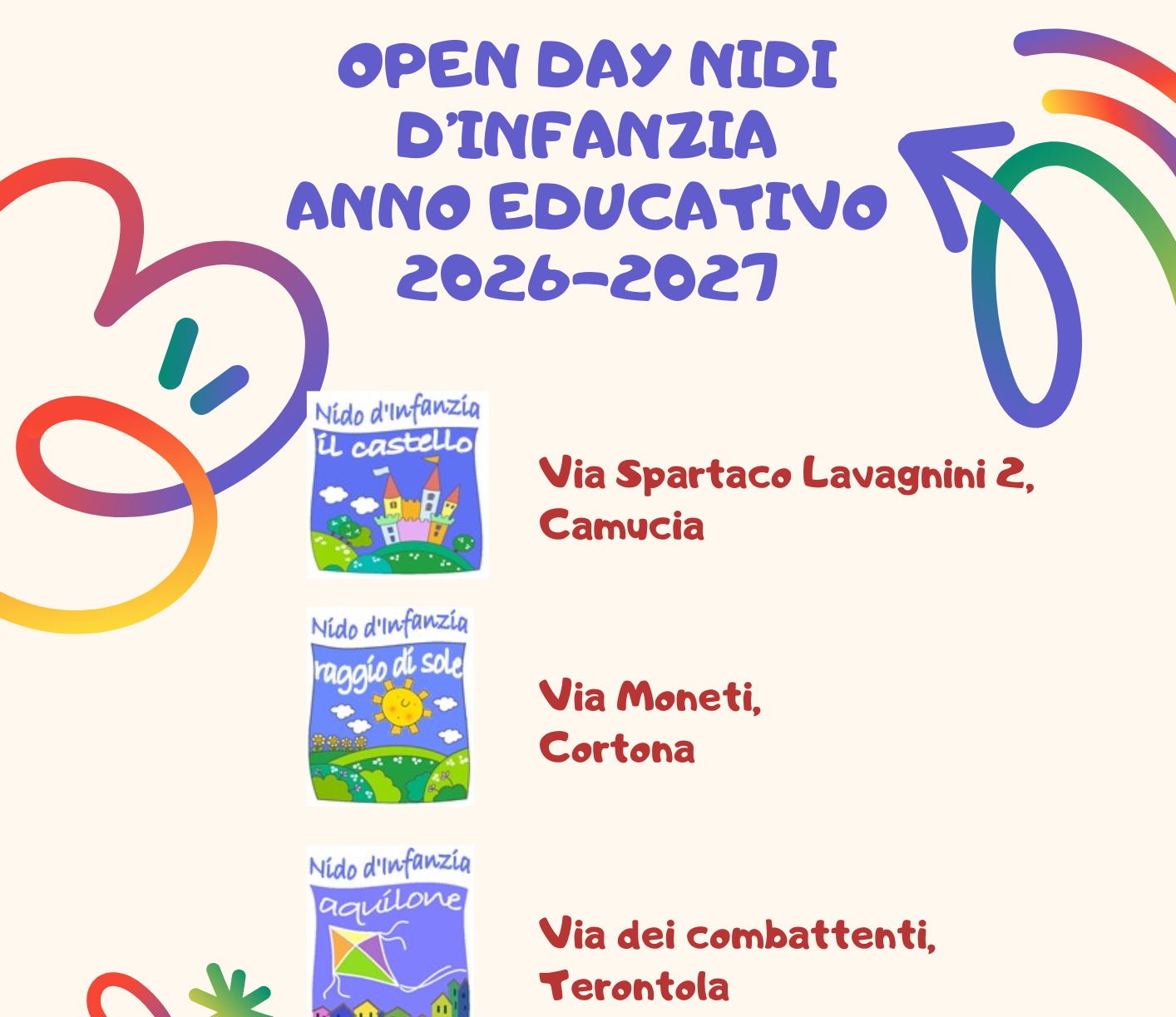 Pubblicato il programma degli «Open Day» dei nidi d’infanzia del Comune di Cortona per l’anno educativo 2026–2027, un’occasione dedicata alle famiglie per conoscere da vicino i servizi educativi del territorio, gli spazi, i progetti pedagogici e il personale.